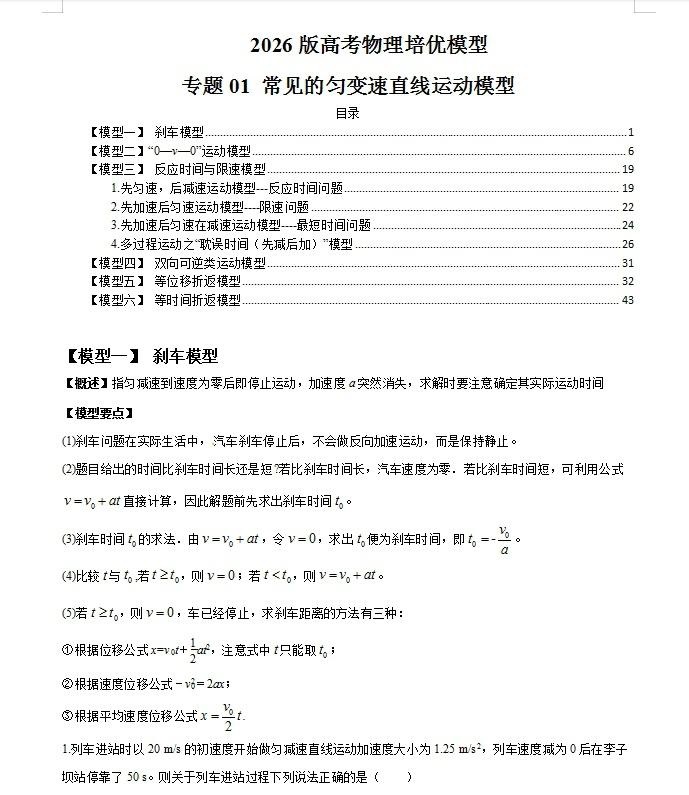 给大家分享的是2026新高考物理培优模型精编讲义(详细解析)包含的都是最新超全面的物理考点知识汇总哈!拿去看看吧,超级实用哈!
