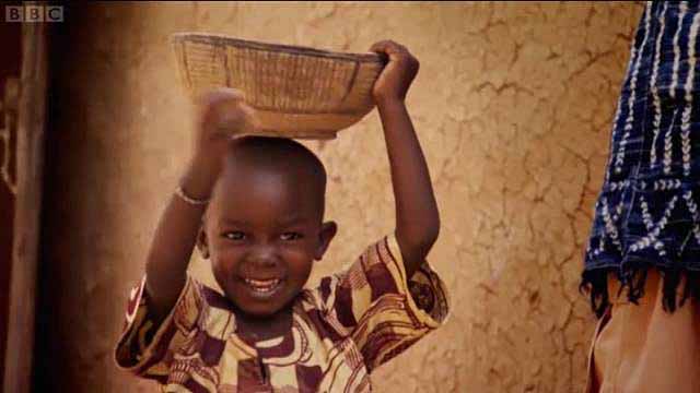 在非洲的马里,Kayentan的爸爸妈妈正在用泥浆修缮他们的房屋,而只有4岁的Kayentan则负责去河床上收集泥巴。